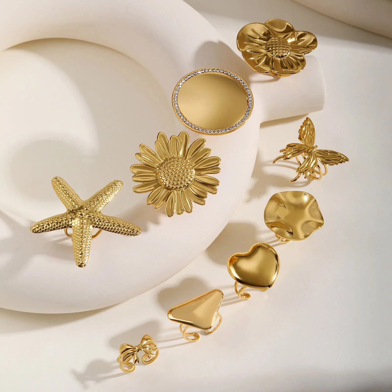 Vnox Stainless Steel Open Ring,Minimalist Irregular Bow Star Sunflower Plant Elements Curved Ring,Finger Jewelry Cute Gifts