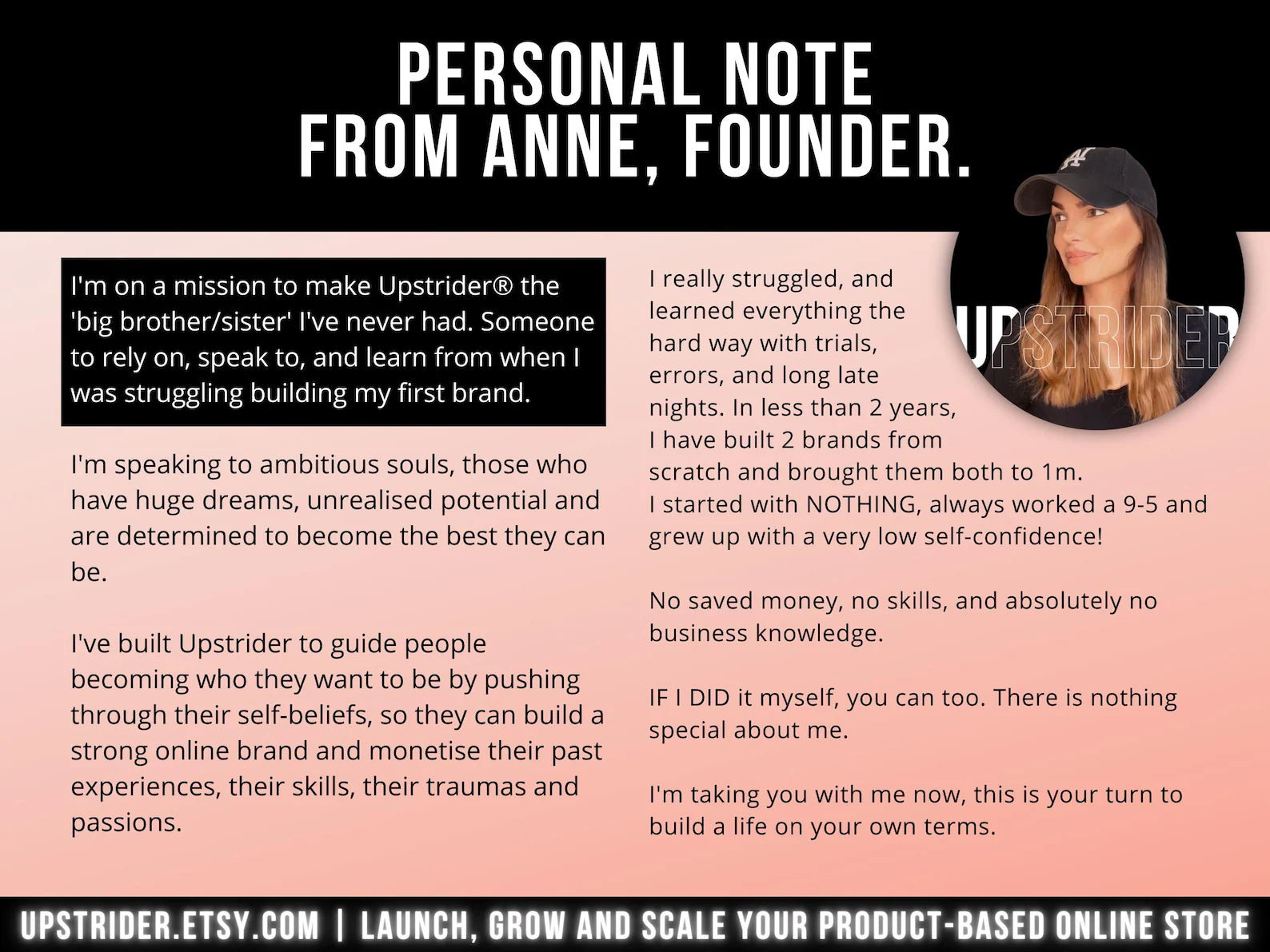 Upstrider® is the ALL-IN-ONE Resource Community designed to help ambitious and driven small business owners build a life on their own terms by monetising their passions, knowledge, traumas and past life experiences with physical and digital products, so they can build a strong brand they love, MAKE AN IMPACT and become anything they want to be, through empowering and educational resources.